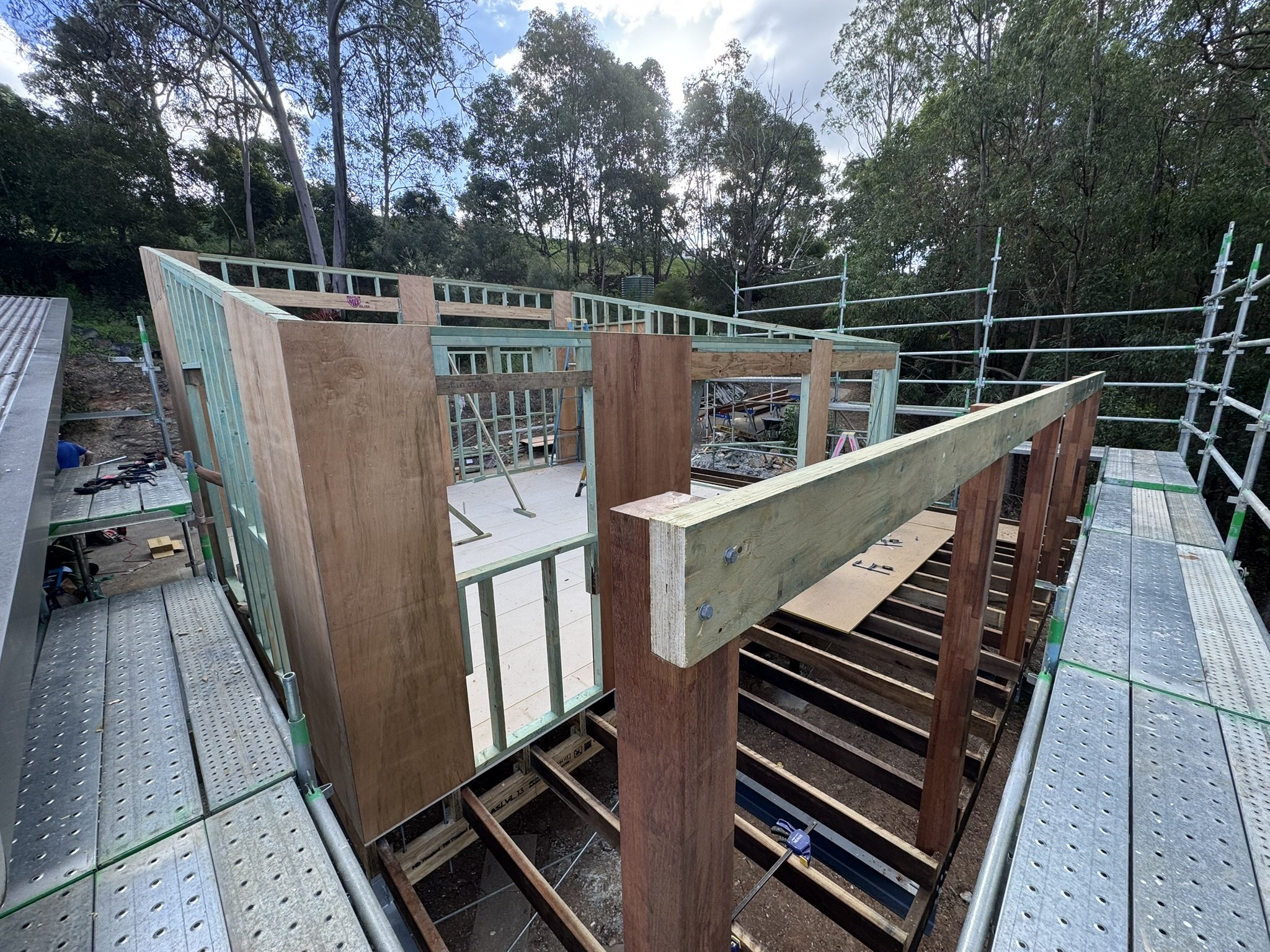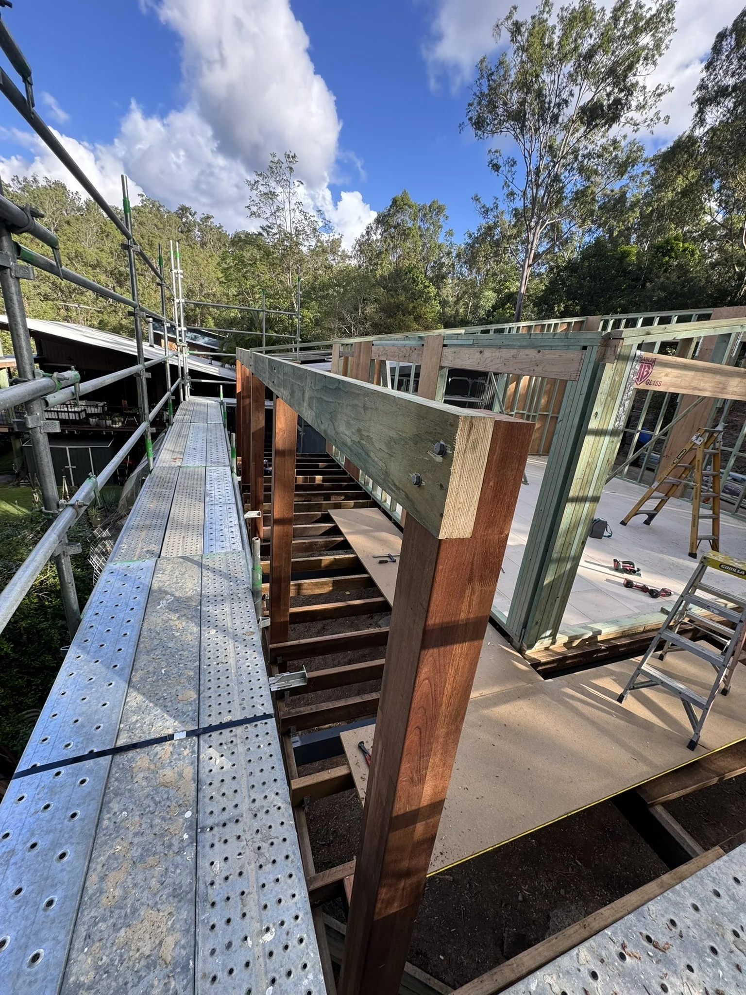 Extension to a Queenslander, for new room, flooring and internal stairs.