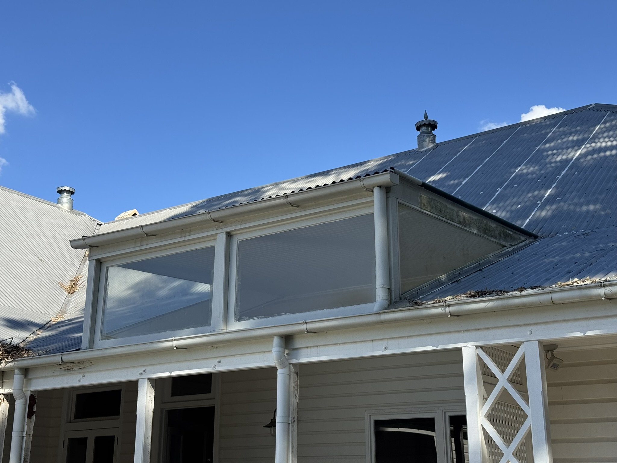To help with the water ingress the client was experiencing, metal flashings were installed the full length of the brick side walls and across the existing ridge line.