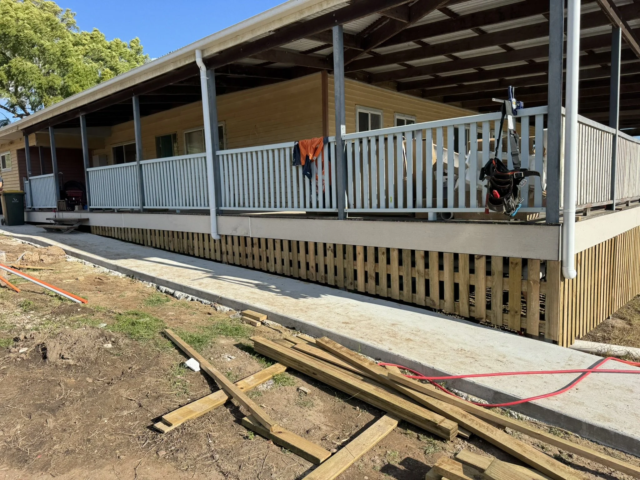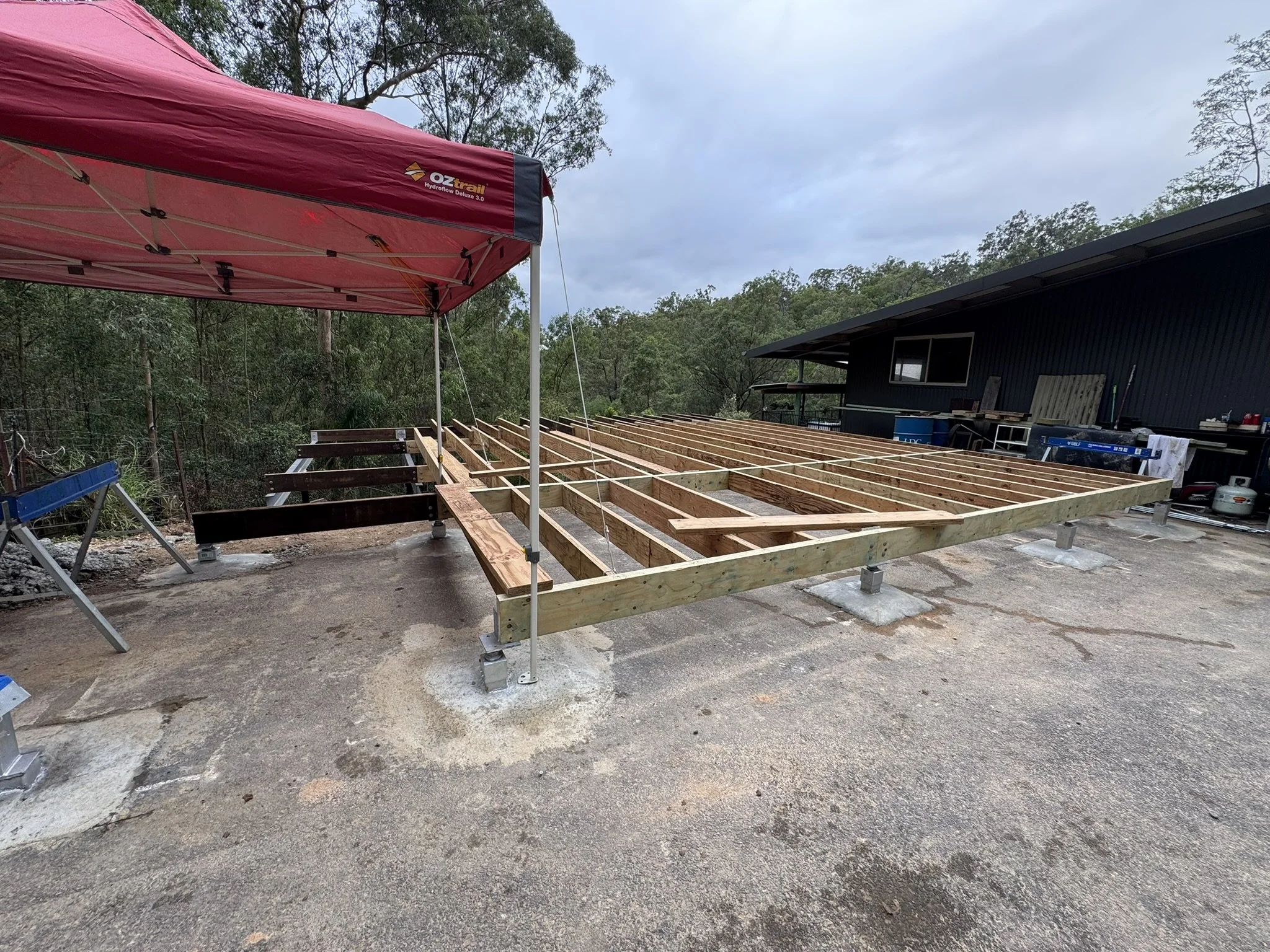 Due to the existing concrete slab issues we had to involve a tiler to bed the area and give us a level surface to install the Outdure joist system.