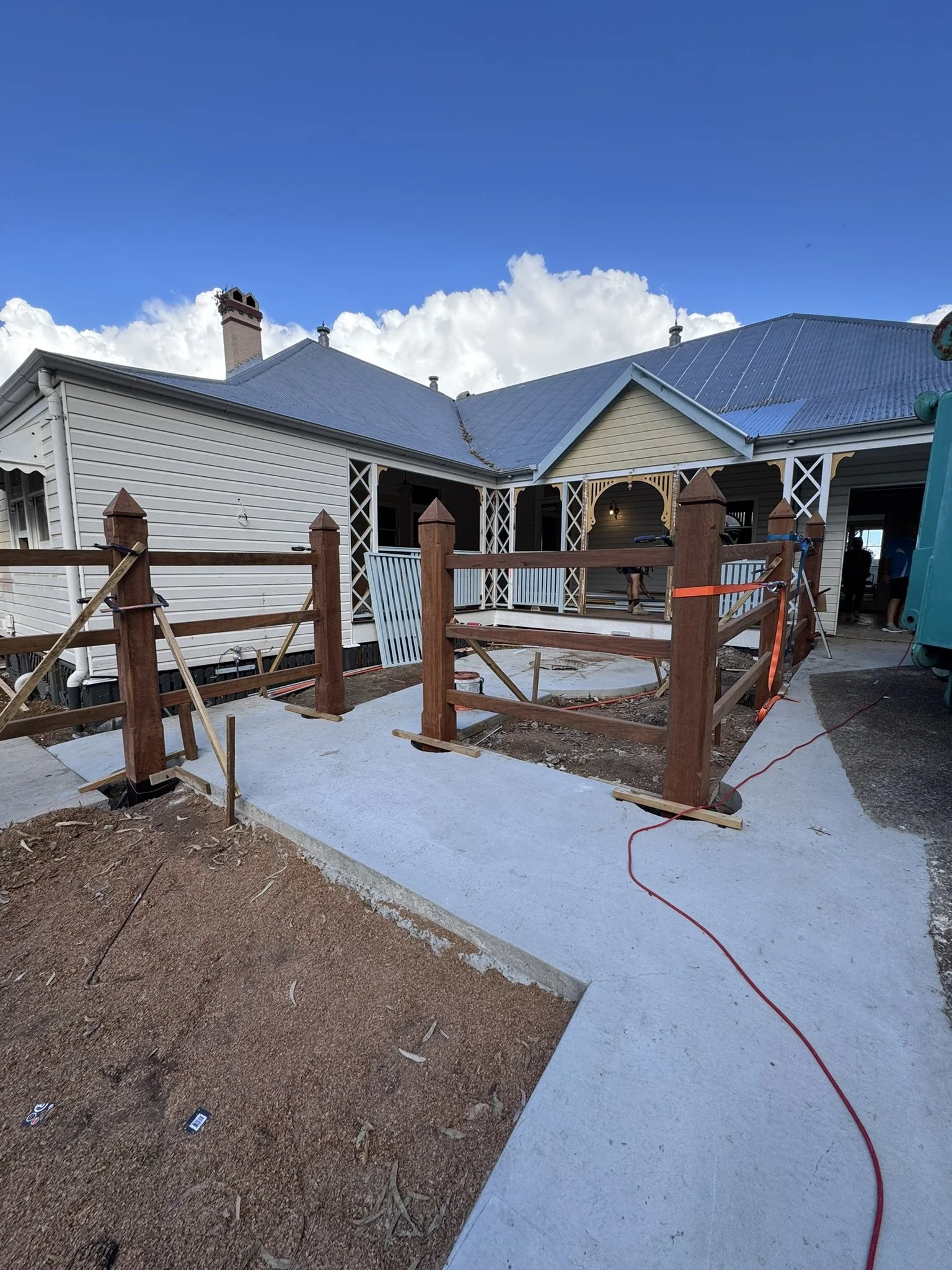 Build a new front fence consisting of 200x200 Ironbark posts and rails with Ironbark paling and sleepers.